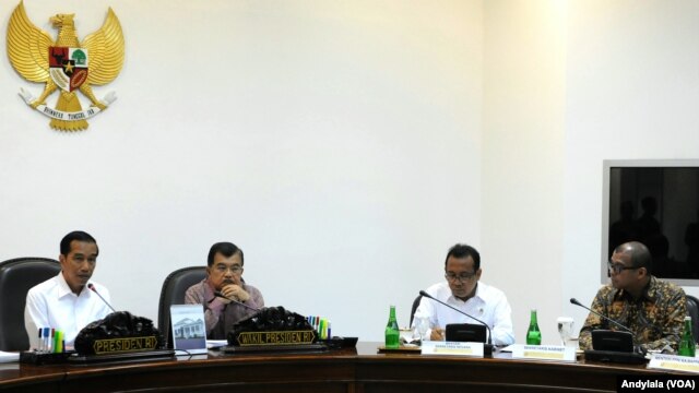 | Presiden Jokowi memimpin rapat kabinet terbatas bidang ekonomi yang diantaranya membahas soal nilai tukar rupiah di kantor Presiden di Jakarta, 17 Desember 2014 (Foto: VOA/Andylala). |